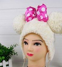 Cute Cream Fleece Mouse Hat with Pom Poms (Pink Bow) Review