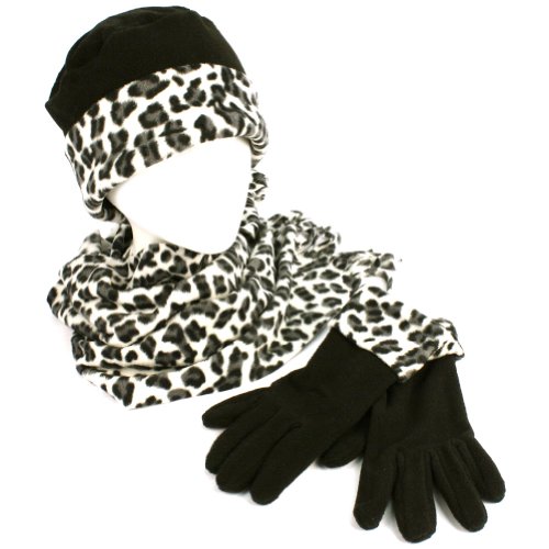 Winter 3pc Set Fleece Animal Print Beanie Skull Ski Cap Hat with Scarf Gloves Black Review